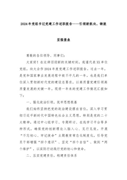 【七哥公文】2024年:2024年党组书记党建工作述职报告 —— 引领新航向,铸就坚强堡垒+更多免费公文+VX:QiGeGongWen2024