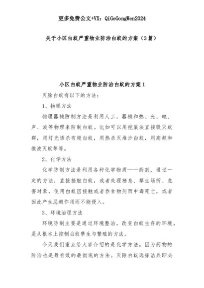 【七哥公文】2025年:(3篇)关于小区白蚁严重物业防治白蚁的方案+更多免费公文+VX:QiGeGongWen2024+更多免费公文+VX:QiGeGongWen2024