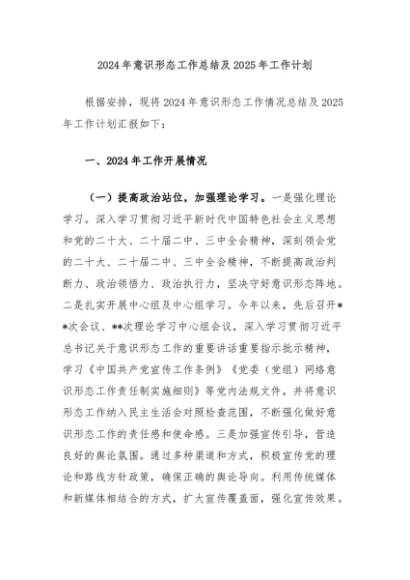 / 【七哥公文】2024年:2024年意识形态工作总结及2025年工作计划+更多免费公文+VX:QiGeGongWen2024