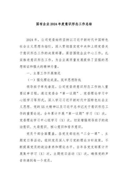 / 【七哥公文】2024年:国有企业2024年度意识形态工作总结+更多免费公文+VX:QiGeGongWen2024