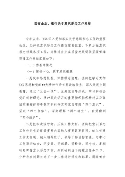 【七哥公文】2024年:国有企业、银行关于意识形态工作总结+更多免费公文+VX:QiGeGongWen2024
