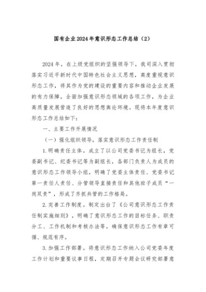 / 【七哥公文】2024年:国有企业2024年意识形态工作总结(2)+更多免费公文+VX:QiGeGongWen2024