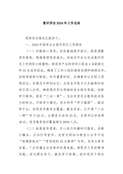 / 【七哥公文】2024年:意识形态2024年工作总结+更多免费公文+VX:QiGeGongWen2024