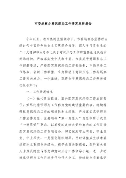 / 【七哥公文】2024年:市委巡察办意识形态工作情况总结报告+更多免费公文+VX:QiGeGongWen2024