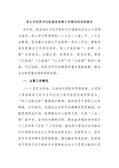 / 【七哥公文】2024年:某公司党委书记抓基层党建工作情况的述职报告+更多免费公文+VX:QiGeGongWen2024