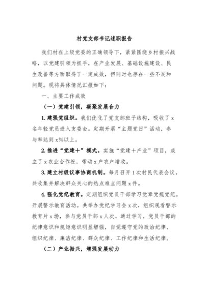 / 【七哥公文】2024年:村党支部书记述职报告+更多免费公文+VX:QiGeGongWen2024