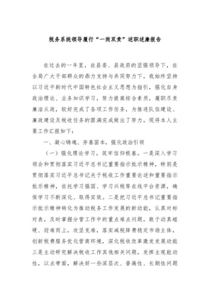/ 【七哥公文】2024年:税务系统领导履行“一岗双责”述职述廉报告+更多免费公文+VX:QiGeGongWen2024