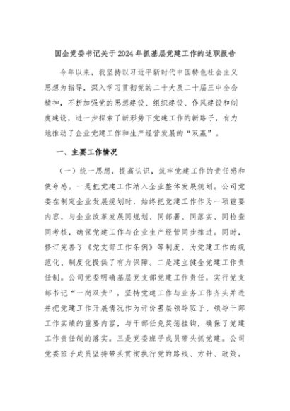 【七哥公文】2024年:国企党委书记关于2024年抓基层党建工作的述职报告+更多免费公文+VX:QiGeGongWen2024