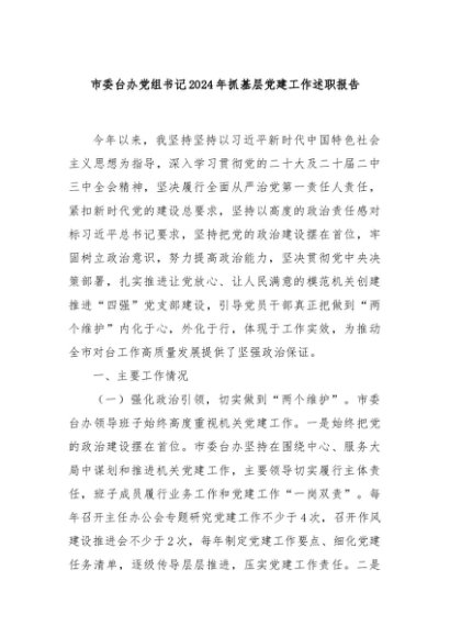 / 【七哥公文】2024年:市委台办党组书记2024年抓基层党建工作述职报告+更多免费公文+VX:QiGeGongWen2024