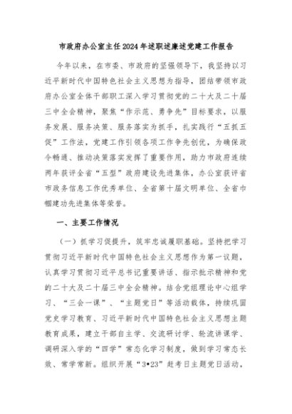/ 【七哥公文】2024年:市政府办公室主任2024年述职述廉述党建工作报告+更多免费公文+VX:QiGeGongWen2024