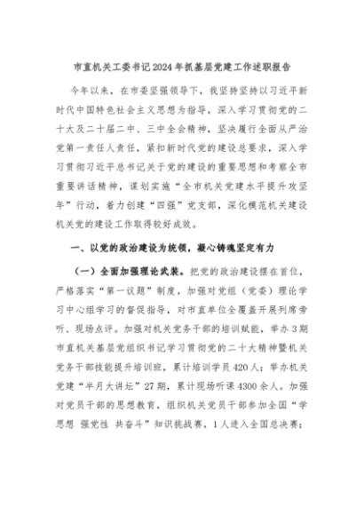 / 【七哥公文】2024年:市直机关工委书记2024年抓基层党建工作述职报告+更多免费公文+VX:QiGeGongWen2024