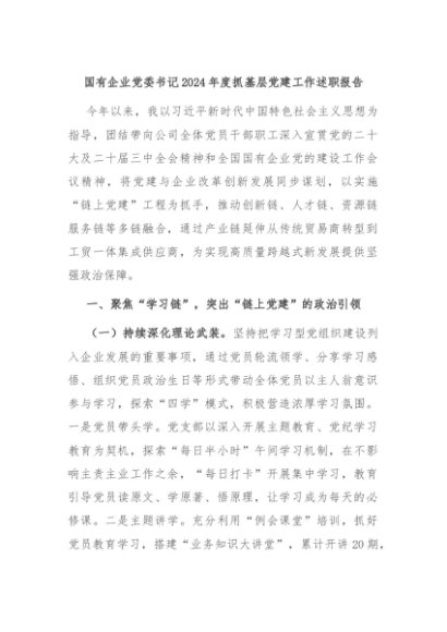 【七哥公文】2024年:国有企业党委书记2024年度抓基层党建工作述职报告 (1)+更多免费公文+VX:QiGeGongWen2024