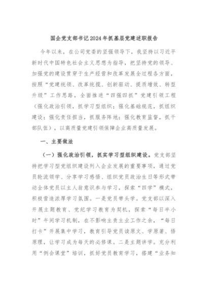 / 【七哥公文】2024年:国企党支部书记2024年抓基层党建述职报告+更多免费公文+VX:QiGeGongWen2024