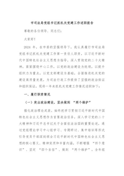 / 【七哥公文】2024年:市司法局党组书记抓机关党建工作述职报告+更多免费公文+VX:QiGeGongWen2024