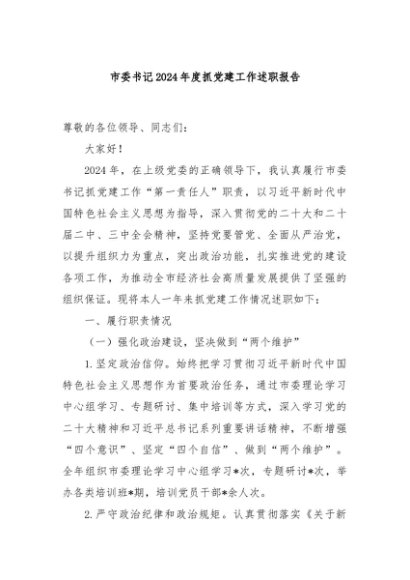 / 【七哥公文】2024年:市委书记2024年度抓党建工作述职报告+更多免费公文+VX:QiGeGongWen2024