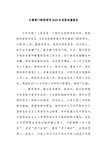 / 【七哥公文】2024年:乡镇部门副职领导2024年述职述廉报告 (1)+更多免费公文+VX:QiGeGongWen2024