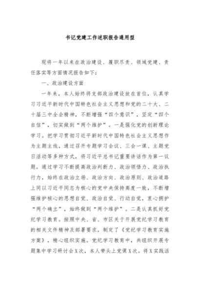 / 【七哥公文】2024年:书记党建工作述职报告通用型+更多免费公文+VX:QiGeGongWen2024