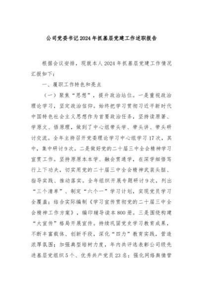 【七哥公文】2024年:公司党委书记2024年抓基层党建工作述职报告+更多免费公文+VX:QiGeGongWen2024 - 七哥-AI智库