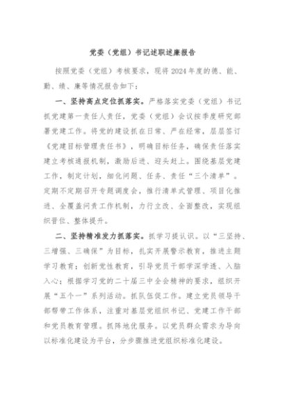 【七哥公文】2024年:党委(党组)书记述职述廉报告 (1)+更多免费公文+VX:QiGeGongWen2024