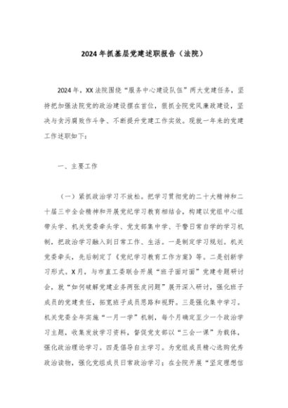 【七哥公文】2024年:2024年抓基层党建述职报告(法院)+更多免费公文+VX:QiGeGongWen2024 - 七哥-AI智库