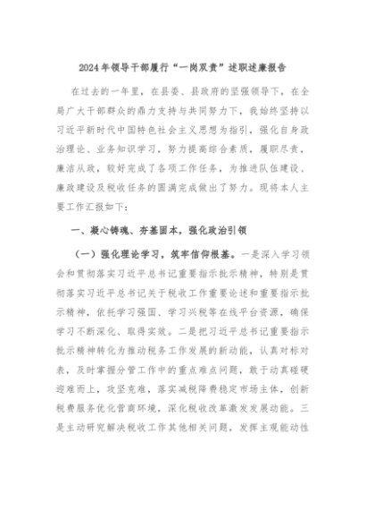 【七哥公文】2024年:2024年领导干部履行“一岗双责”述职述廉报告+更多免费公文+VX:QiGeGongWen2024