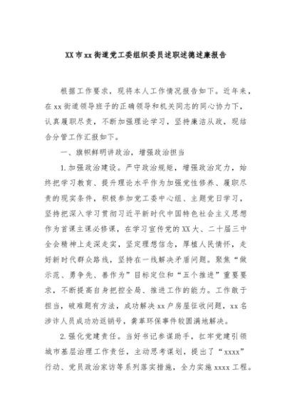 【七哥公文】2024年:XX市xx街道党工委组织委员述职述德述廉报告 (1)+更多免费公文+VX:QiGeGongWen2024