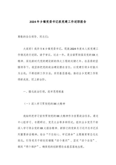 / 【七哥公文】2024年:2024年乡镇党委书记抓党建工作述职报告+更多免费公文+VX:QiGeGongWen2024