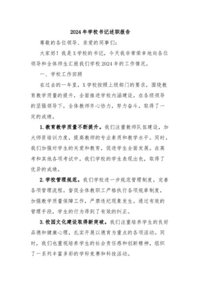 / 【七哥公文】2024年:2024年学校书记述职报告 (1)+更多免费公文+VX:QiGeGongWen2024