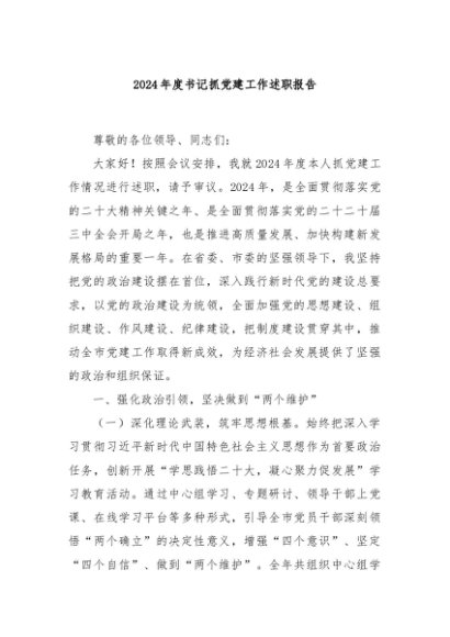 / 【七哥公文】2024年:2024年度书记抓党建工作述职报告+更多免费公文+VX:QiGeGongWen2024