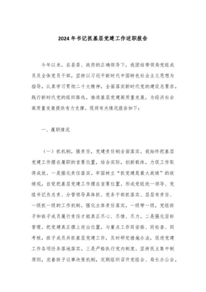 / 【七哥公文】2024年:2024年书记抓基层党建工作述职报告+更多免费公文+VX:QiGeGongWen2024
