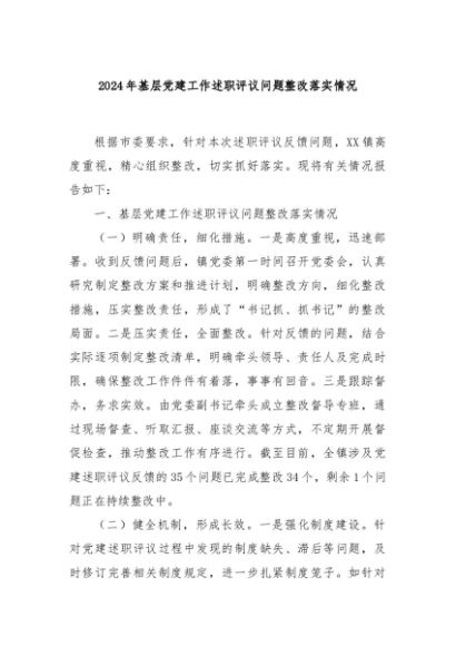 / 【七哥公文】2024年:2024年基层党建工作述职评议问题整改落实情况+更多免费公文+VX:QiGeGongWen2024