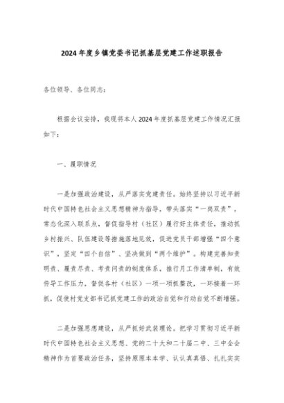 / 【七哥公文】2024年:2024年度乡镇党委书记抓基层党建工作述职报告+更多免费公文+VX:QiGeGongWen2024