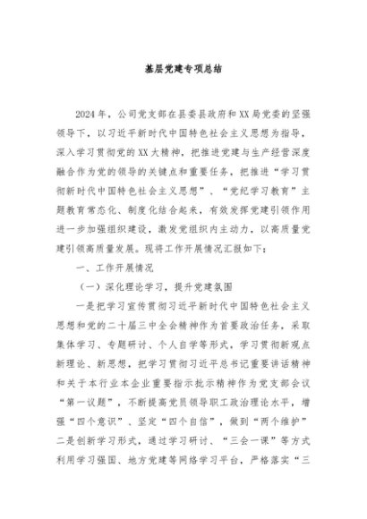 / 【七哥公文】2024年:基层党建专项总结+更多免费公文+VX:QiGeGongWen2024