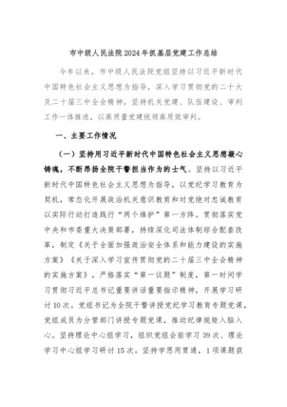 / 【七哥公文】2024年:市中级人民法院2024年抓基层党建工作总结+更多免费公文+VX:QiGeGongWen2024