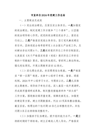 / 【七哥公文】2024年:市直单位2024年党建工作总结+更多免费公文+VX:QiGeGongWen2024