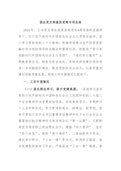 / 【七哥公文】2024年:国企党支部基层党建专项总结+更多免费公文+VX:QiGeGongWen2024