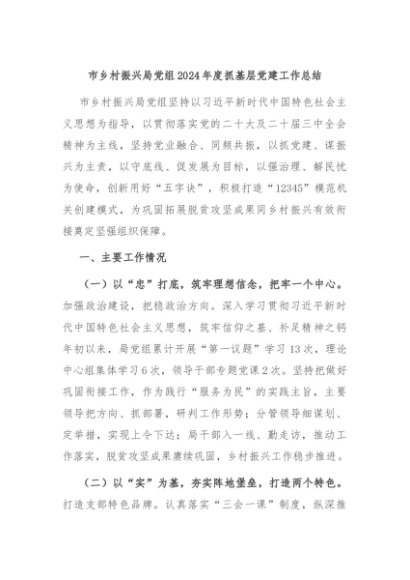 / 【七哥公文】2024年:市乡村振兴局党组2024年度抓基层党建工作总结+更多免费公文+VX:QiGeGongWen2024