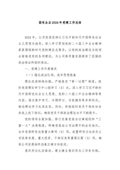 / 【七哥公文】2024年:国有企业2024年党建工作总结+更多免费公文+VX:QiGeGongWen2024