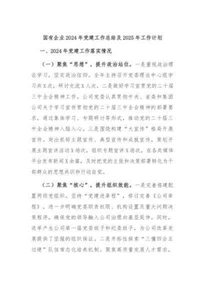 【七哥公文】2024年:国有企业2024年党建工作总结及2025年工作计划+更多免费公文+VX:QiGeGongWen2024