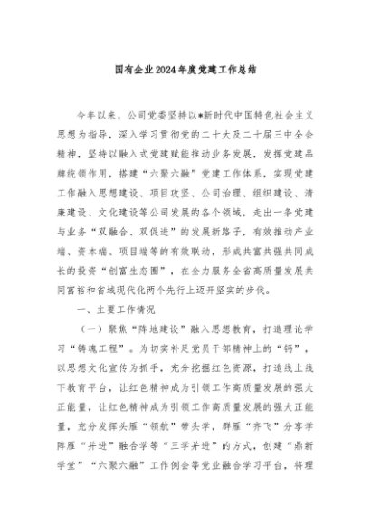 / 【七哥公文】2024年:国有企业2024年度党建工作总结 (1)+更多免费公文+VX:QiGeGongWen2024