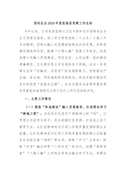 / 【七哥公文】2024年:国有企业2024年度抓基层党建工作总结+更多免费公文+VX:QiGeGongWen2024