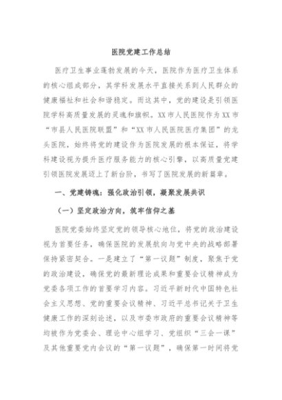 / 【七哥公文】2024年:医院党建工作总结+更多免费公文+VX:QiGeGongWen2024