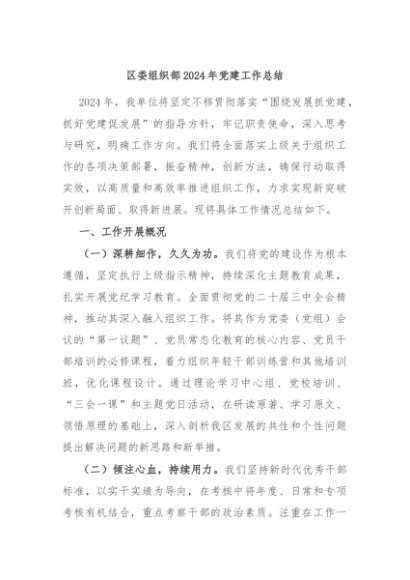 / 【七哥公文】2024年:区委组织部2024年党建工作总结+更多免费公文+VX:QiGeGongWen2024