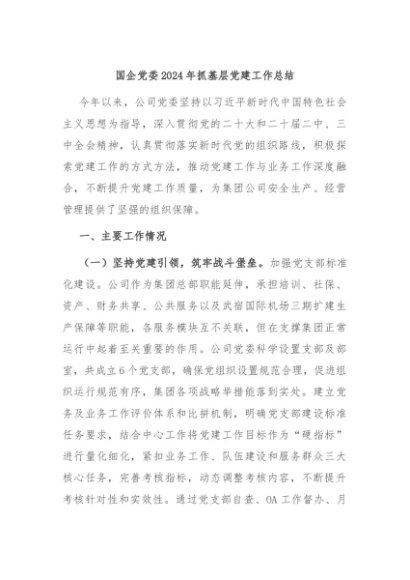 / 【七哥公文】2024年:国企党委2024年抓基层党建工作总结+更多免费公文+VX:QiGeGongWen2024
