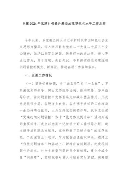 【七哥公文】2024年:乡镇2024年党建引领提升基层治理现代化水平工作总结+更多免费公文+VX:QiGeGongWen2024