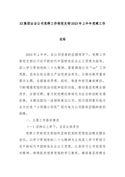 【七哥公文】2024年:XX集团企业公司党群工作部党支部2023年上半年党建工作总结.+更多免费公文+VX:QiGeGongWen2024