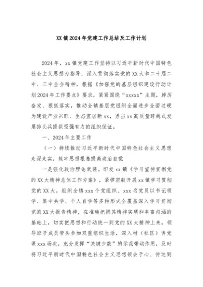 / 【七哥公文】2024年:XX镇2024年党建工作总结及工作计划+更多免费公文+VX:QiGeGongWen2024