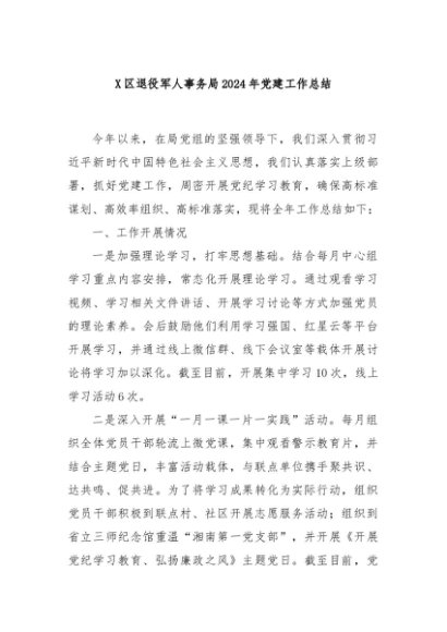 / 【七哥公文】2024年:X区退役军人事务局2024年党建工作总结 (1)+更多免费公文+VX:QiGeGongWen2024