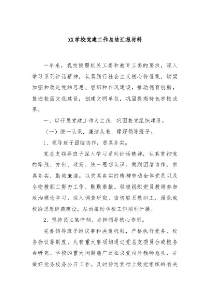 / 【七哥公文】2024年:XX学校党建工作总结汇报材料+更多免费公文+VX:QiGeGongWen2024