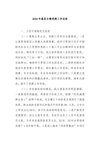 / 【七哥公文】2024年:2024年基层乡镇党建工作总结+更多免费公文+VX:QiGeGongWen2024